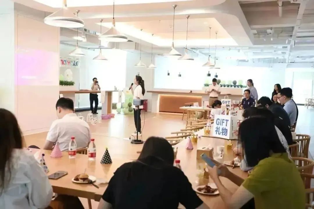 生日會上,暖場歌曲表演、聽聲辨人等游戲節目輪番上演。在愉悅的氛圍感染下,大家打開了話匣子,暫時卸下了工作的疲憊與壓力,現場其樂融融,一派歡聲笑語。生日會的尾聲,在主持人的邀請下,所有壽星一起走到臺前切蛋糕,在舒緩生日快樂歌的圍繞下,許下自己美好的生日愿望。