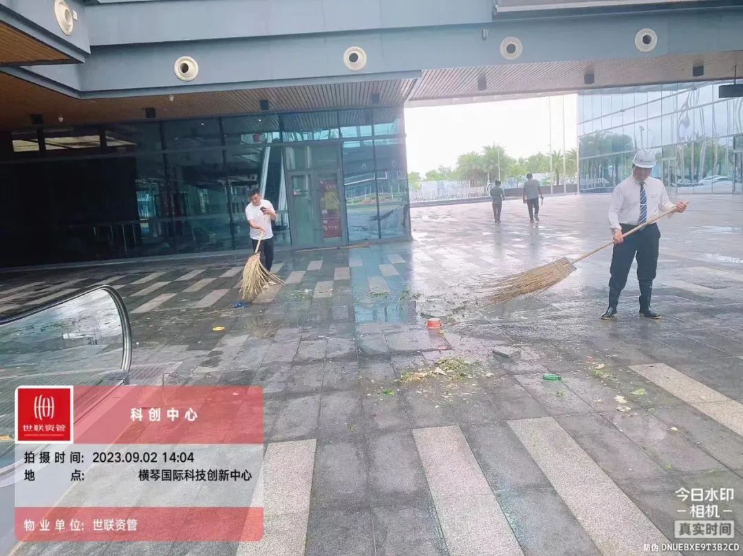 第一時(shí)間對(duì)園區(qū)環(huán)境進(jìn)行清障復(fù)原,完成園區(qū)所有枯樹(shù)樹(shù)葉清理、樹(shù)木扶正,樹(shù)撐檢查加固;完成園區(qū)公共垃圾桶、煙灰柱、地毯復(fù)原工作;檢查受災(zāi)情況并進(jìn)行修復(fù),檢查設(shè)備機(jī)房、電梯是否正常運(yùn)行等,確保企業(yè)可正常辦公。其中橫琴?lài)?guó)際科創(chuàng)中心園區(qū)應(yīng)急避難場(chǎng)所本次接待人員約1500人次,產(chǎn)生生活垃圾約3噸,人員撤離后已及時(shí)清理。