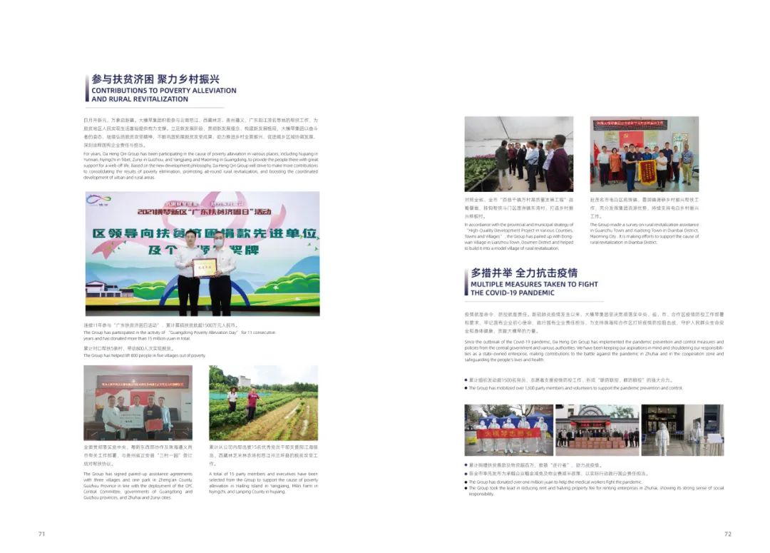積極參與云南怒江、西藏林芝、貴州遵義、廣東陽江茂名等地的幫扶工作,助力推進鄉(xiāng)村全面振興;在疫情防控的特殊時期,舉全集團之力支持珠海和合作區(qū)打好疫情防控阻擊戰(zhàn);主動投身社會民生事業(yè),開展公益活動,為珠海建設(shè)民生幸福樣板城市貢獻力量……