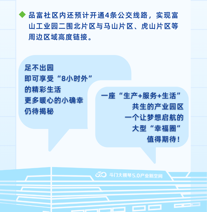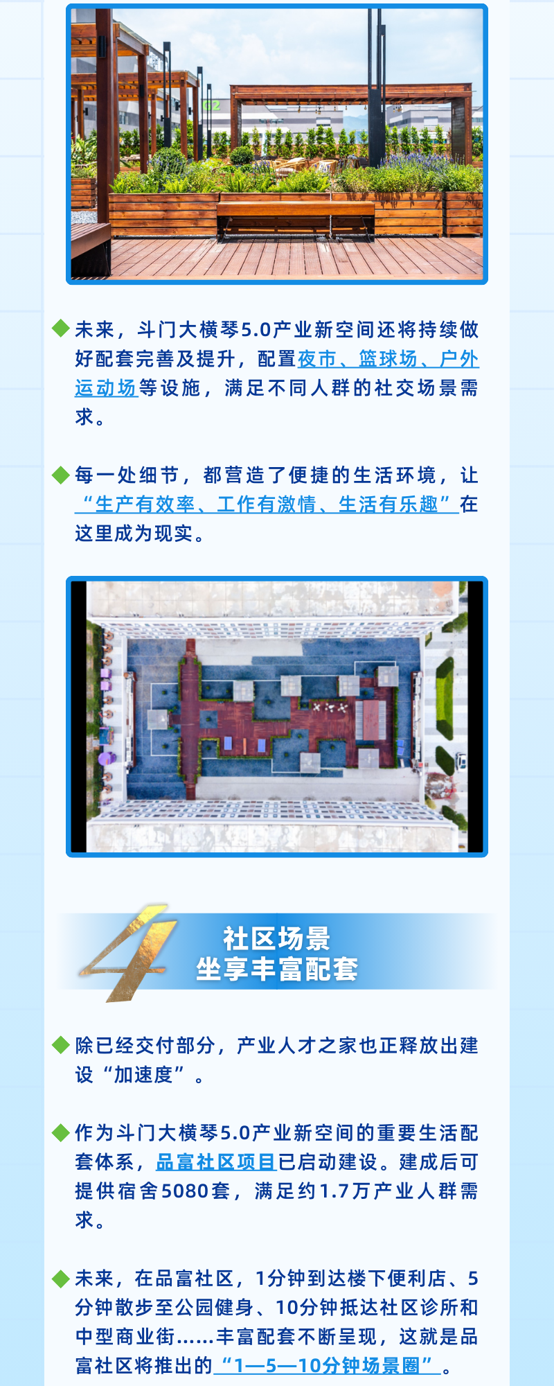 新空間,托起產(chǎn)業(yè)新夢(mèng)想。作為一座能“拎機(jī)投產(chǎn)”“拎包入住”的高質(zhì)量園區(qū),斗門大橫琴5.0產(chǎn)業(yè)新空間不僅適應(yīng)新形勢(shì)、賦能新技術(shù)、承載新產(chǎn)業(yè),還配備能滿足員工吃、住、娛樂休閑等需求的生活、商業(yè)配套。
