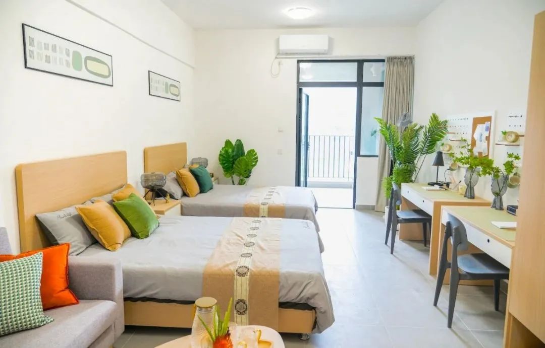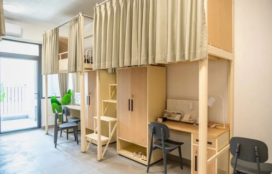每間宿舍均配備陽臺、淋浴間、洗手間,目前戶型包含單人間、雙人間、四人間,滿足不同類型產業工人的生活需求。