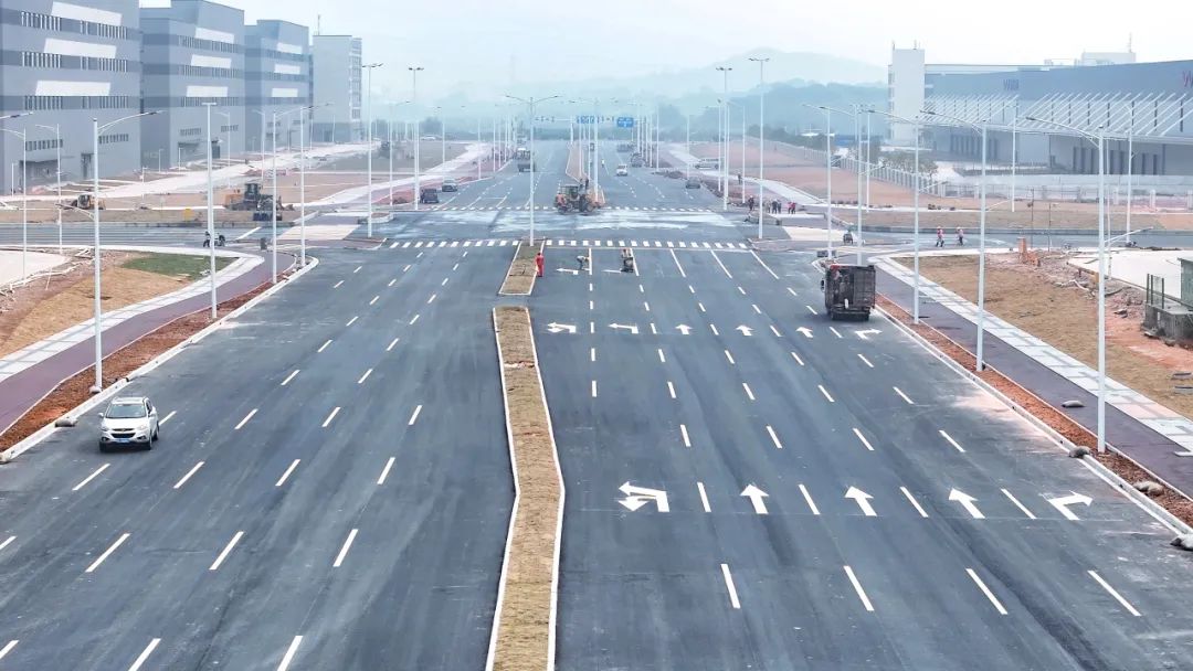 2024年1月30日,雷蛛大道中段、欣港路東西、馬山北路東西、中心西路及濱港路北段等約6公里道路按預定計劃建成通車,富山工業園二圍北片區初步形成“一大環、兩小環”交通路網,基本滿足片區內各廠區出行需求。