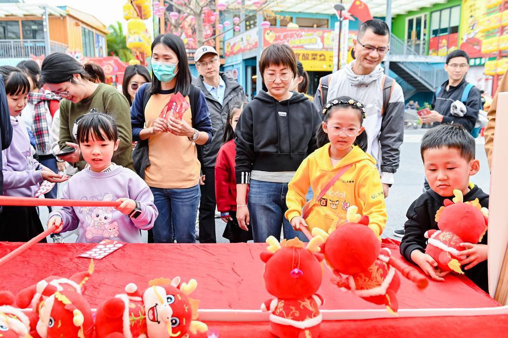 趣味游園游戲活動由大橫琴集團旗下的13家二級企業承辦,以“一企一特色、一家一品牌”為主調,既有猜燈謎、剪窗花等民俗活動,也有數字華容道、幸運射箭等現代游戲,煙火氣十足,又不乏文化味,為游客帶來了一場年味十足的節日盛宴?;顒蝇F場還引入了澳門美食攤位,不少市民及游客駐足攤位前品嘗地道澳門美食。