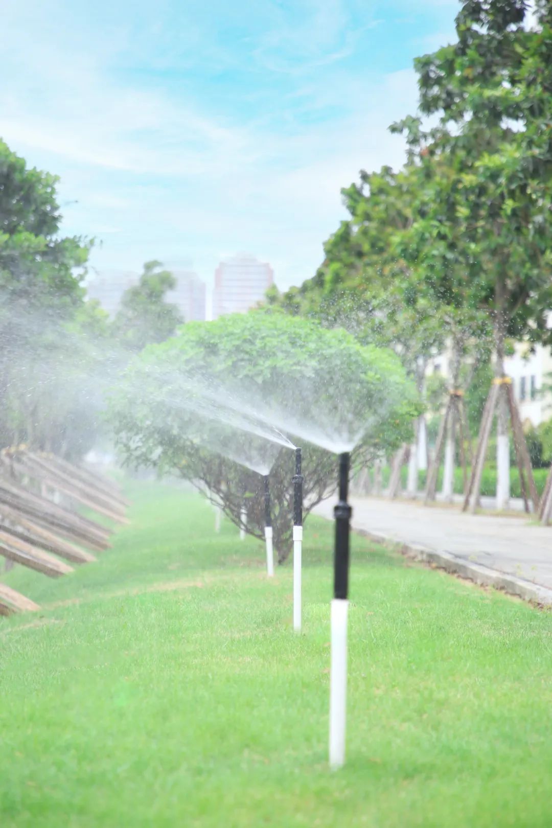 為了減少病蟲害發生,做好秋冬季樹木養護工作,2023年10月,大橫琴城資以橫琴大道為示范點開展喬木涂白工作,為喬木逐一披上美觀溫暖的“防護衣”。