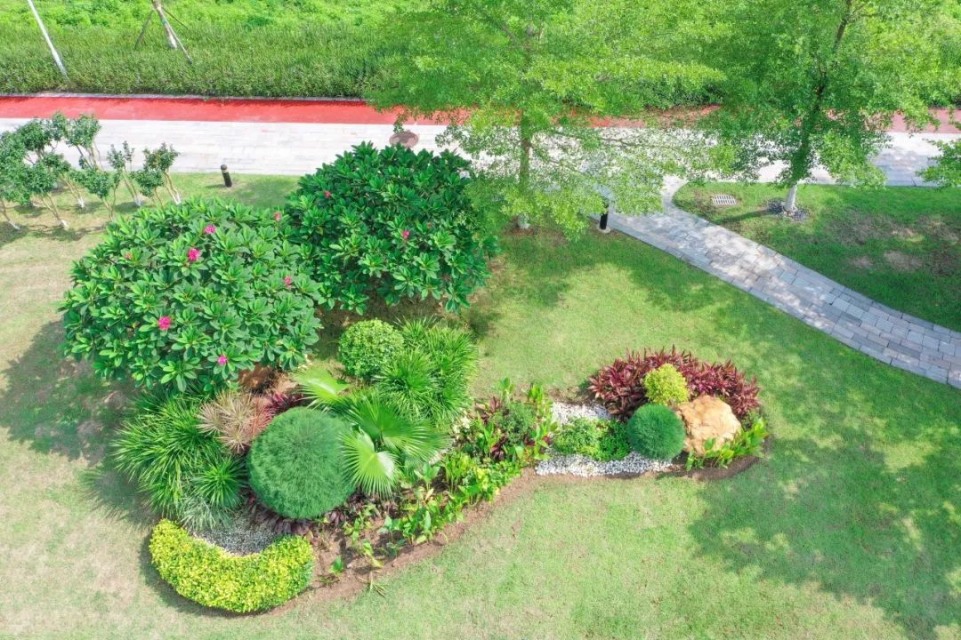 改造過程中,因地制宜開展精細化修剪和作業,讓苗木煥發出蓬勃的生機與活力,并升級綠化澆灌系統,采用灑水車+噴淋系統相結合的澆灌方式,切實提升綠化管養水平。此外,將綠植與造景相結合,在重要節點處打造道路小景,注重景觀層次和植被多樣豐富性,營造綠意盎然、自然和諧的城市綠化空間。