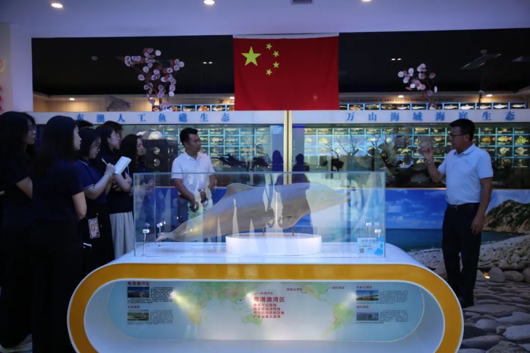 萬山海洋生物科普館是珠海市首個離島海洋生物科普館。這里不僅有豐富的生態(tài)魚缸和珍貴的中華白海豚標本,還通過實景化展示,如人工魚礁和海底生態(tài)缸,生動呈現(xiàn)萬山群島海域的生物多樣性。揭牌儀式后,萬山海洋生物科普館館長安東為講解員志愿者們提供培訓,從科普館整體概況、海洋生物種類、保護海洋生態(tài)的意義等方面,幫助志愿者拓展海洋知識,進一步提升志愿服務能力。