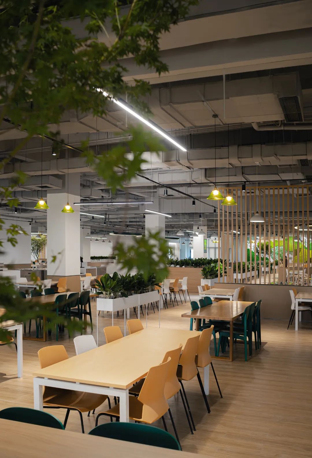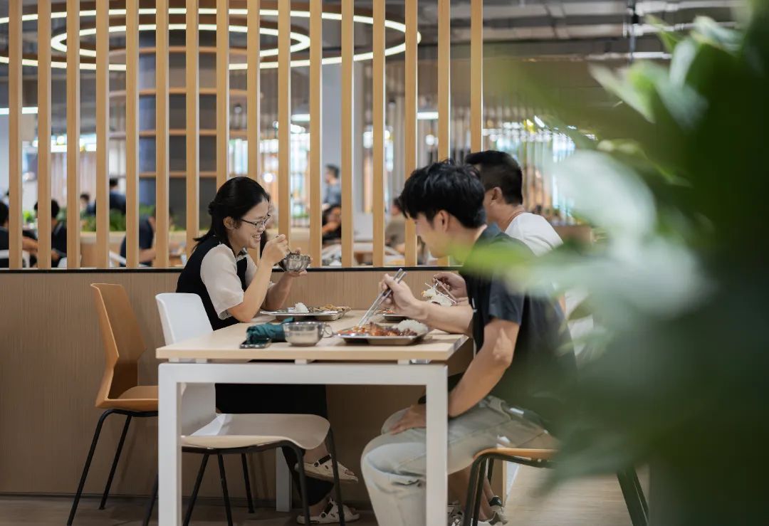 食堂在設計時,就充分考慮這還是一個社交空間,空間上分割成滿足不同社交需求的空間,靈動多元。