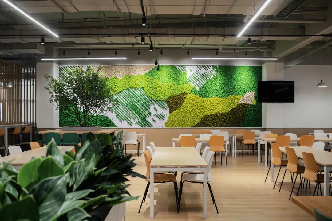 走進“廠其林”食堂,仿佛將一片小森林搬了進來。