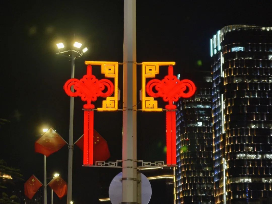 大橫琴城資在港澳大道、環島西路等重點路段懸掛了 230套中國結,以亮麗的形象喜迎國慶。