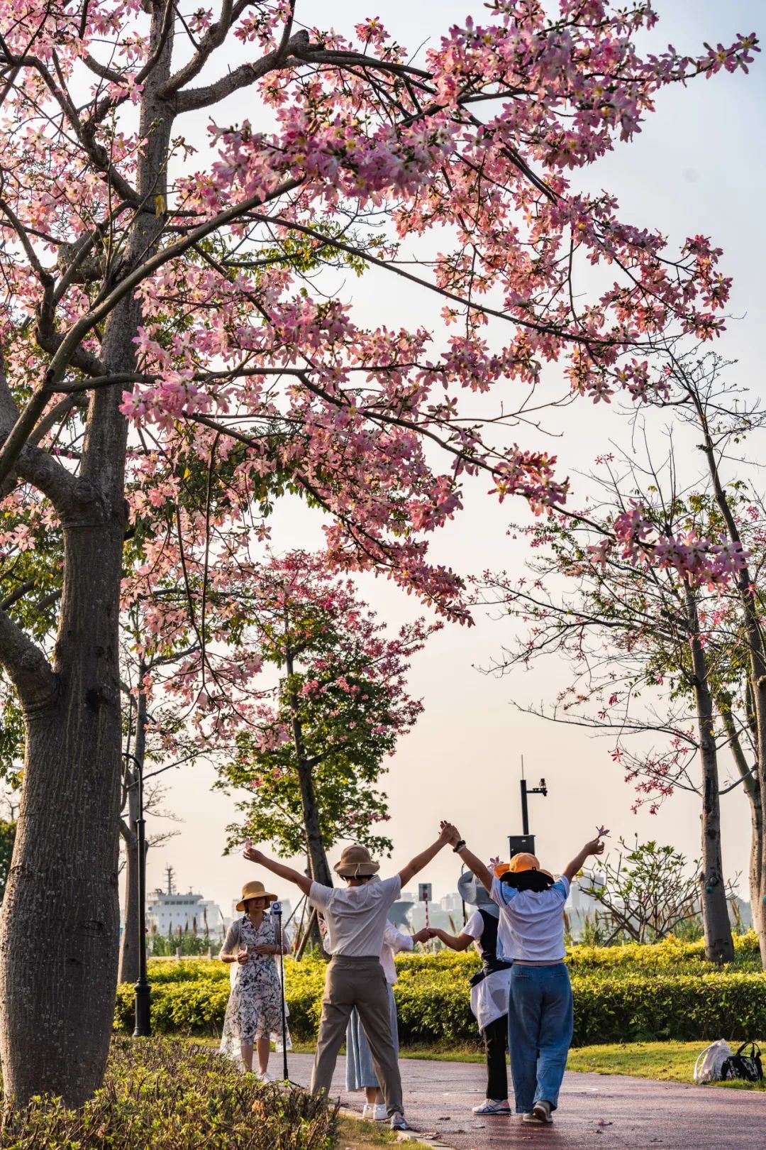 每年立冬前后,告別春夏雨季的橫琴花海長(zhǎng)廊便迎來了她一年之中最美麗的季節(jié)——美麗異木棉盛花期。絢爛的粉色花海以飽滿、茂盛、茁壯的姿態(tài)展現(xiàn)在市民游客們面前,海岸四處洋溢著浪漫與溫馨。