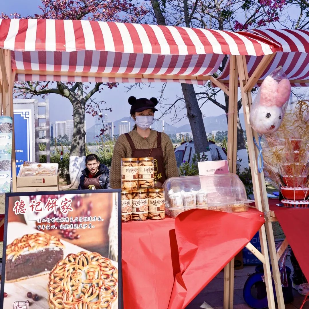 除此之外,每逢周末,一號(hào)、二號(hào)和三號(hào)驛站開展東灣墟市活動(dòng),斗門蓮洲鎮(zhèn)東灣村農(nóng)產(chǎn)品市集走進(jìn)花海,帶來優(yōu)質(zhì)的本地產(chǎn)綠色農(nóng)產(chǎn)品、特色手工糖水和農(nóng)副產(chǎn)品、非遺點(diǎn)心小吃等,吸引了大批市民游客上前詢問和購(gòu)買。游客在享受美景、體驗(yàn)美食之旅的同時(shí),亦促進(jìn)了鄉(xiāng)村振興與滿足城鎮(zhèn)消費(fèi)需求的良性循環(huán),鄉(xiāng)村市集在花海煥發(fā)出了新活力。