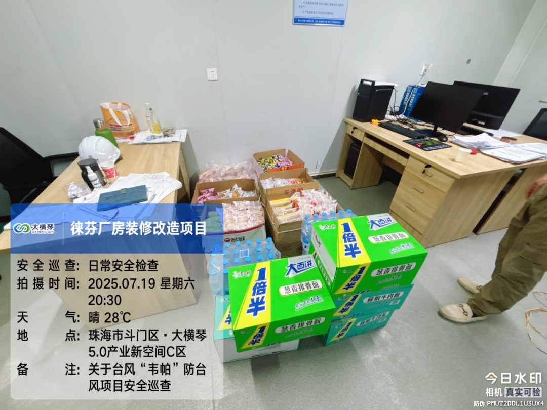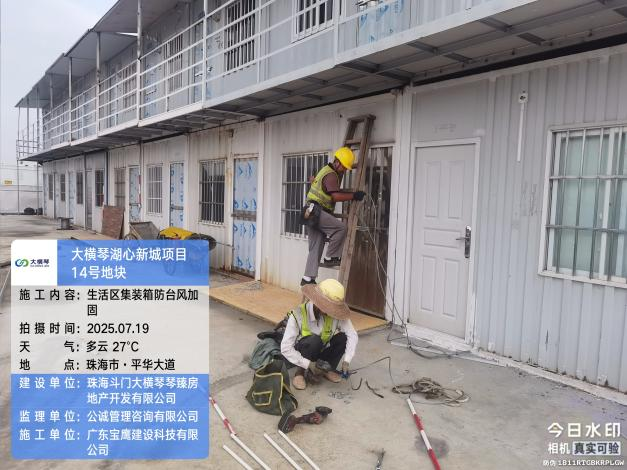 大橫琴置業公司提前統計各建設項目的臨險人員數量,提前踏勘轉移安置場所。7月19日16點,組織所有項目避險人員在18點前全部迅速轉移、不漏一人。在建項目臨險人員約4286人,各項目落實了應急轉移安置場所,充分準備了物資、食品運輸到各項目避難場所,組織大巴車接送工人,反復檢查確保項目施工現場、工人板房宿舍無一人留滯,應急轉移場所里安排了值班值守維持秩序,禁止私自外出。
