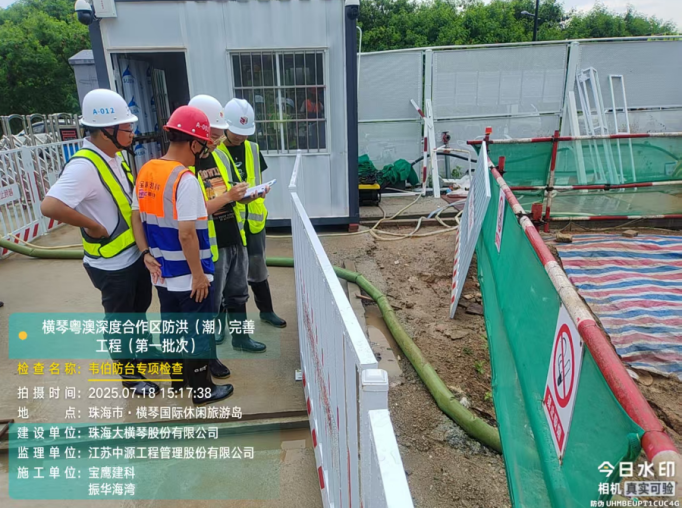 大橫琴股份公司提前部署防風專項排查,組織對橫琴環島西路二期及環島西路至長隆大道繞行大橫琴山道路工程、厚樸道擴建工程等17個在建項目開展全覆蓋檢查。重點排查起重設備、攪拌樁機械等大型設備的加固情況,以及深基坑、工地圍擋、臨時工棚、施工臨時用電等項目的防護措施。累計發現隱患問題20余項,已于7月19日17時前全部完成整改。