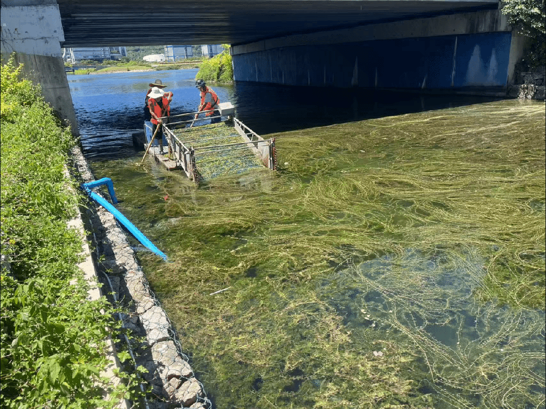 水草雖是自然之景,但過量生長卻會影響河道生態(tài)與美觀。大橫琴城資在橫琴排洪渠及天沐河河道開展專項(xiàng)清理,集中打撈過量生長及腐敗斷根的水草。