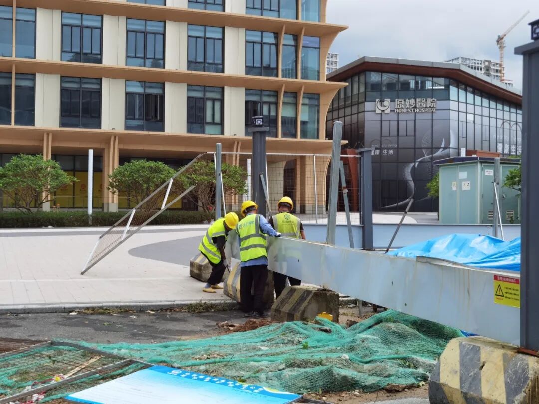 臺風過境后,珠光集團98個在建項目迅速開展復工復產(chǎn)準備工作。各單位有序組織項目一線管理人員和工人進行災后進場前安全教育培訓后返回工地,迅速開展清理雜物、圍擋維修、恢復受損設施等工作,對辦公區(qū)和生活區(qū)、臨時設施、現(xiàn)場臨水臨電系統(tǒng)等進行全面安全排查,對大型設備、腳手架等進行專項檢查、檢修,統(tǒng)計災后受災情況上報集團。
