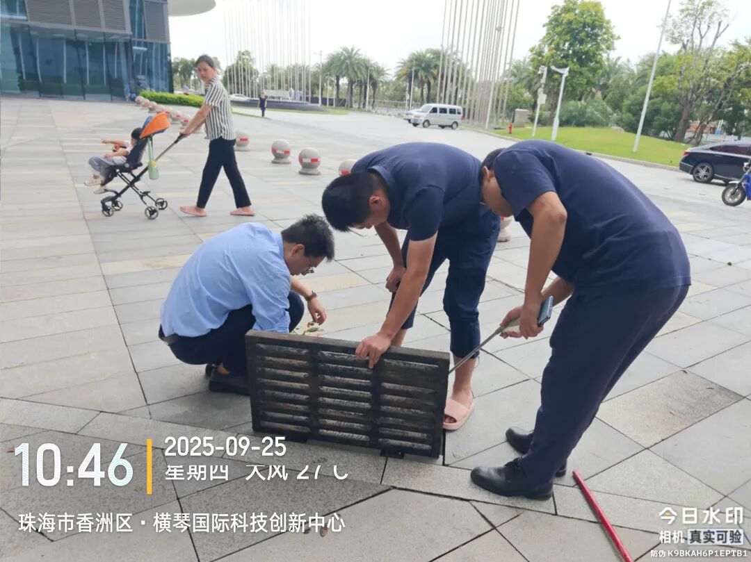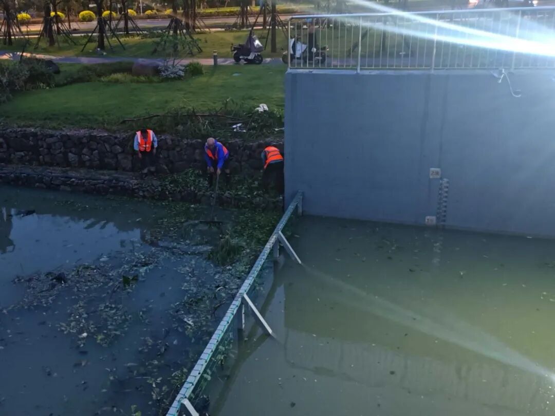 臺風期間,受風暴潮影響,橫琴天沐河水位上漲,珠光集團迅速組織搶險力量,通過加筑沙袋有效阻止海水倒灌進天沐河,同步安全轉(zhuǎn)移設備設施,并緊急安裝抽水設備清理積水,避免變電房被水浸泡。臺風過境后,搶險隊伍立即投入后續(xù)清理工作,第一時間清理泵站進水口垃圾,保障泵站排水通暢,降低村渠水位;清理排水口垃圾,保障土渠排水暢通;并全力協(xié)助合作區(qū)市政管理署,清理倒塌的邊境圍網(wǎng)。