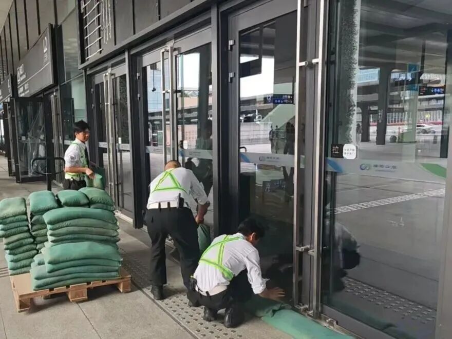 在橫琴口岸區(qū)域,提前排查200多個(gè)集水井,調(diào)集230個(gè)緊固件加固門窗,近3000條沙袋、近100個(gè)防洪擋板、11臺(tái)水泵等應(yīng)對(duì)福臨道、地庫(kù)36處接駁口、負(fù)二層下沉庭院、U行車道等重點(diǎn)區(qū)域強(qiáng)排和封堵需要。同時(shí)對(duì)通關(guān)區(qū)域的100余扇玻璃門進(jìn)行加固,在易水浸區(qū)域放置沙袋、擋板。同時(shí),全面清理雨水井、排水溝渠,確保排水暢通。