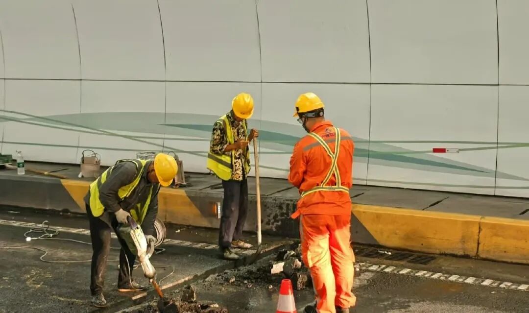 針對長隆隧道存在的路面滲水問題,技術團隊經(jīng)綜合分析,采用針對性優(yōu)化的埋管排水工藝,對滲漏點進行精準修復,累計完成38處病害治理,有效解決安全隱患。同時,組織力量著手處理橫琴隧道的路面坑塘問題,通過平整路面、優(yōu)化標線,顯著提升車輛通行的平穩(wěn)性與安全性,為賽事期間的交通疏導提供有力支撐。